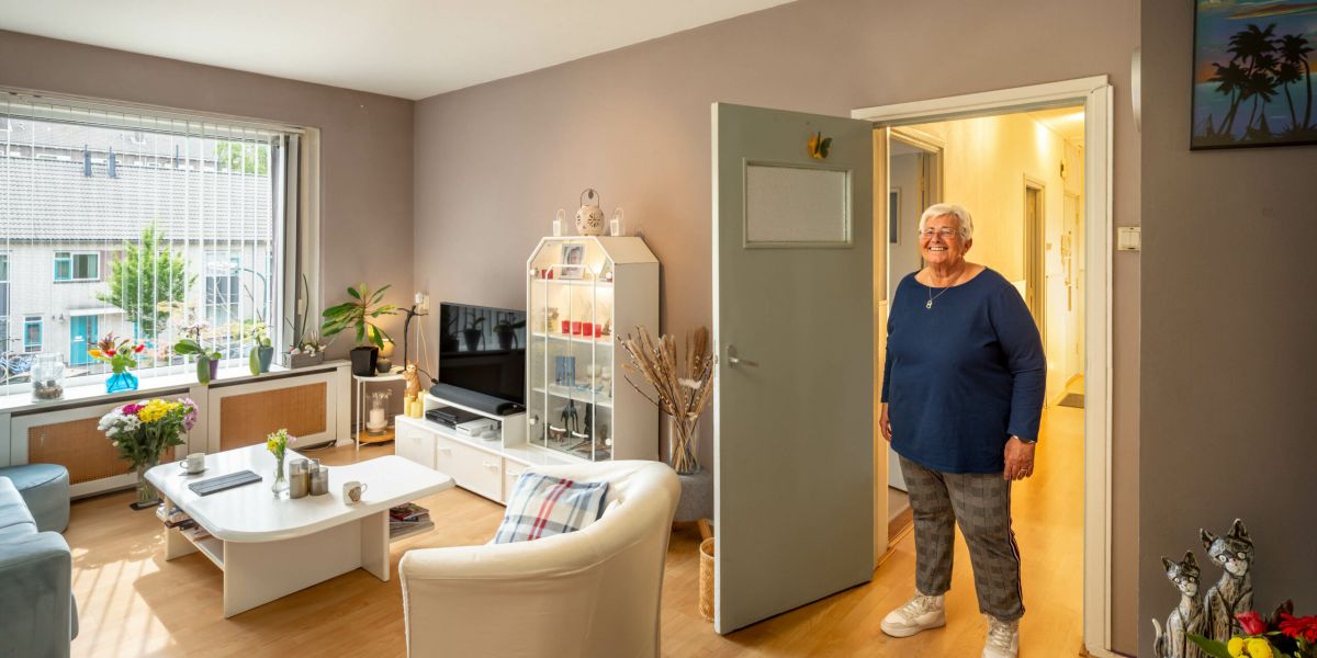 Henny woont al 43 jaar met plezier in Te Werve Oost. Voor haar is het echt thuis: een fijne, groene wijk waar mensen elkaar kennen en buren klaarstaan om te helpen als dat nodig is.